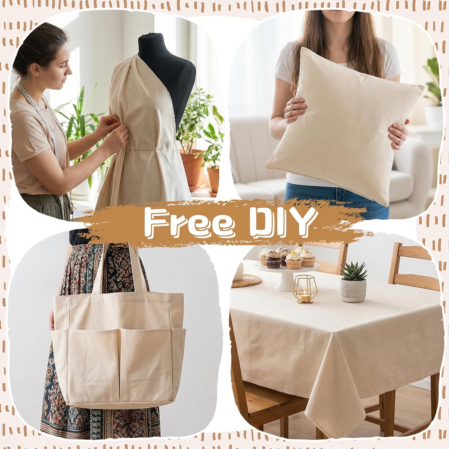 - Versatile Applications for Crafts & Home: Suitable for a wide range of uses: sewing garments, curtains, aprons, pillow covers, or tablecloths; serving as quilting backing, embroidery bases, photo backdrops, or dyeing/printing materials. Perfect for fashion designers, quilters, and DIY enthusiasts, blending functionality with natural charm