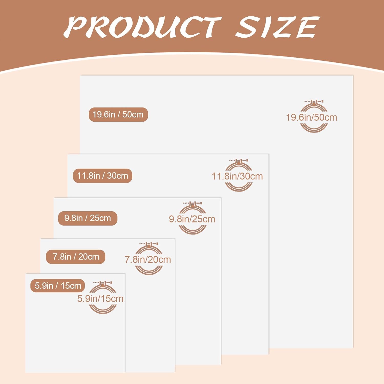 20 PCS Linen Embroidery Fabric, Pre-Cut Solid Color 5 Different Sizes 5.9 to 19.6inch Embroidery Cloth Fabric Squares, Needlework Sewing Quilting Cloth for DIY Garment Crafts Project, Bright White