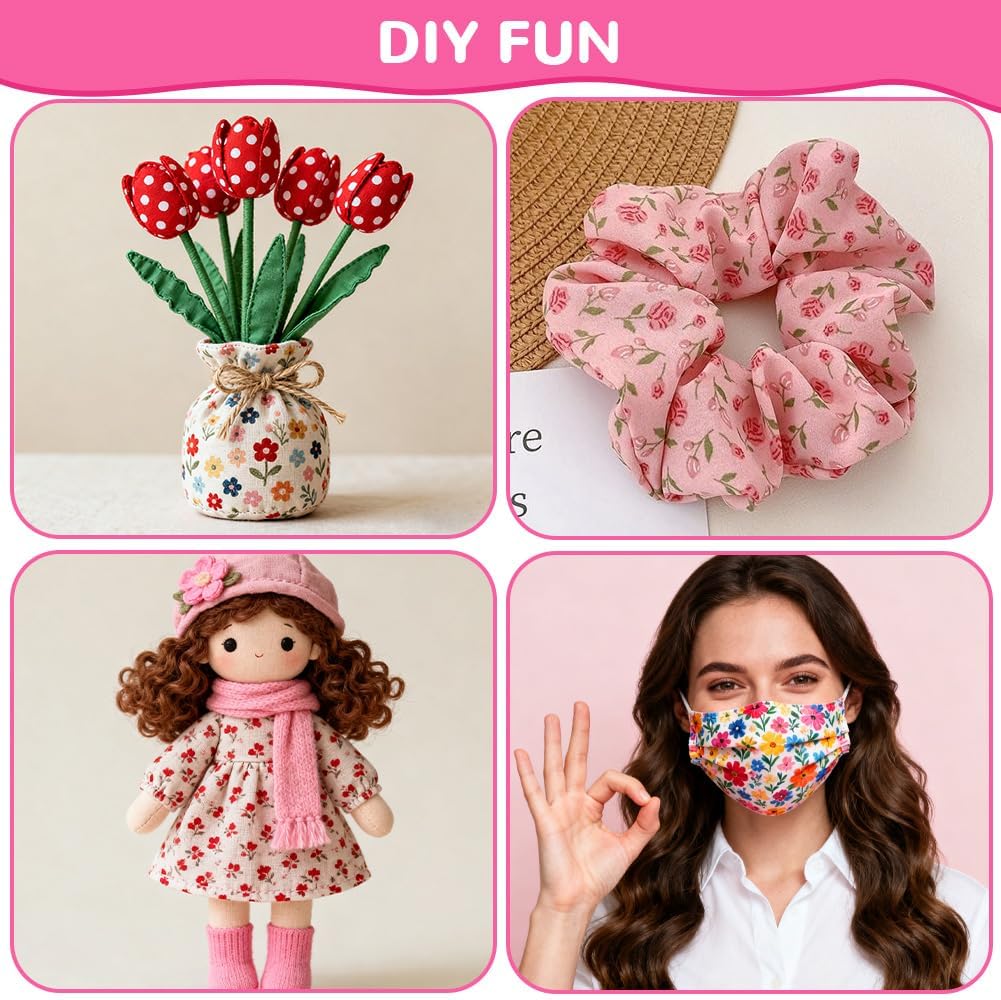 Ainiv 7pcs 100% Quilting Cotton Fabric, 19.68″x19.68″ Fabric Bundles Squares, Floral Precut Squares Patchwork for Quilting, Sewing, DIY Crafts, Mask, Orange