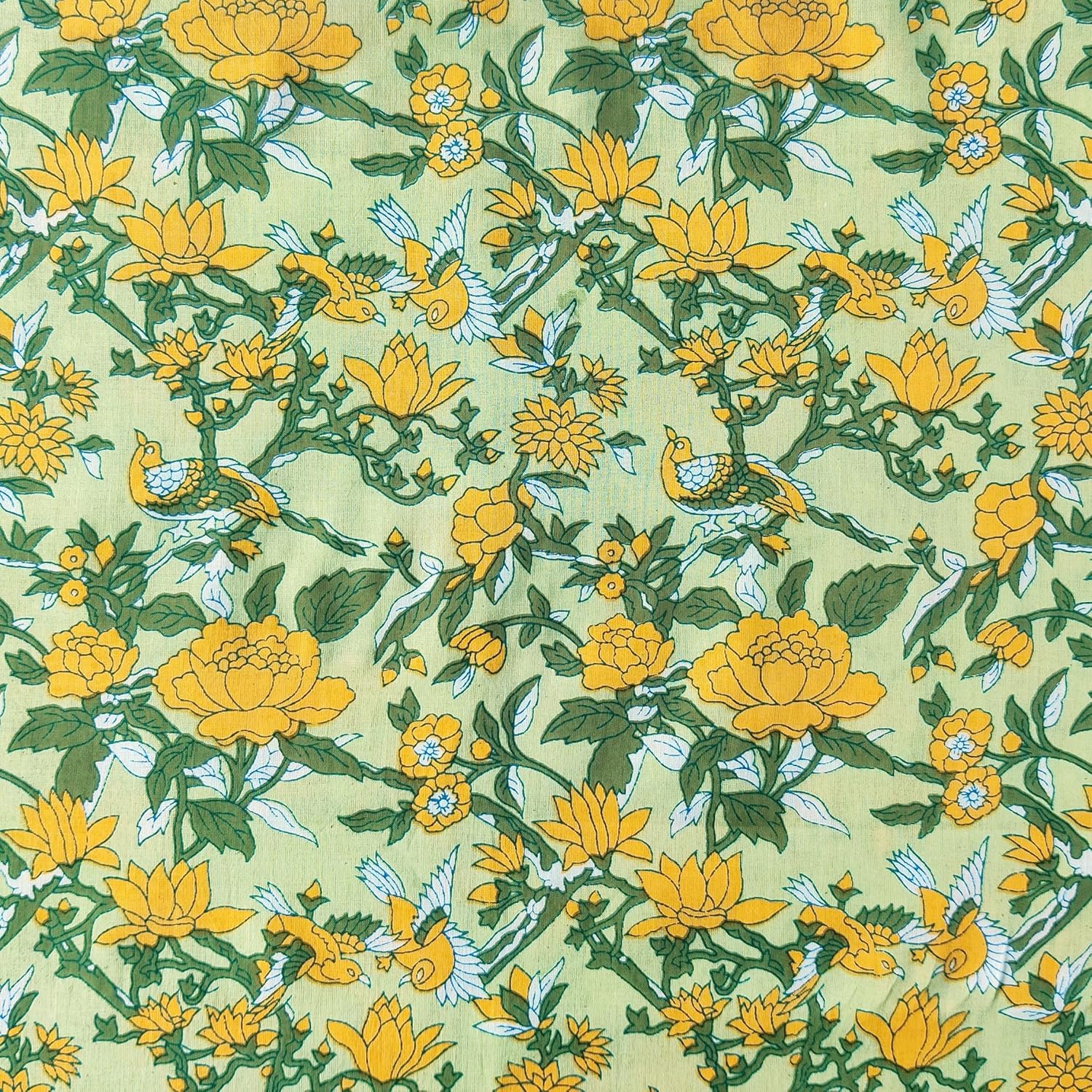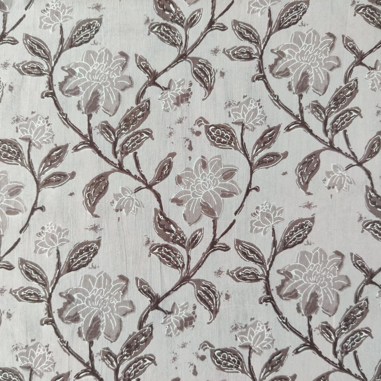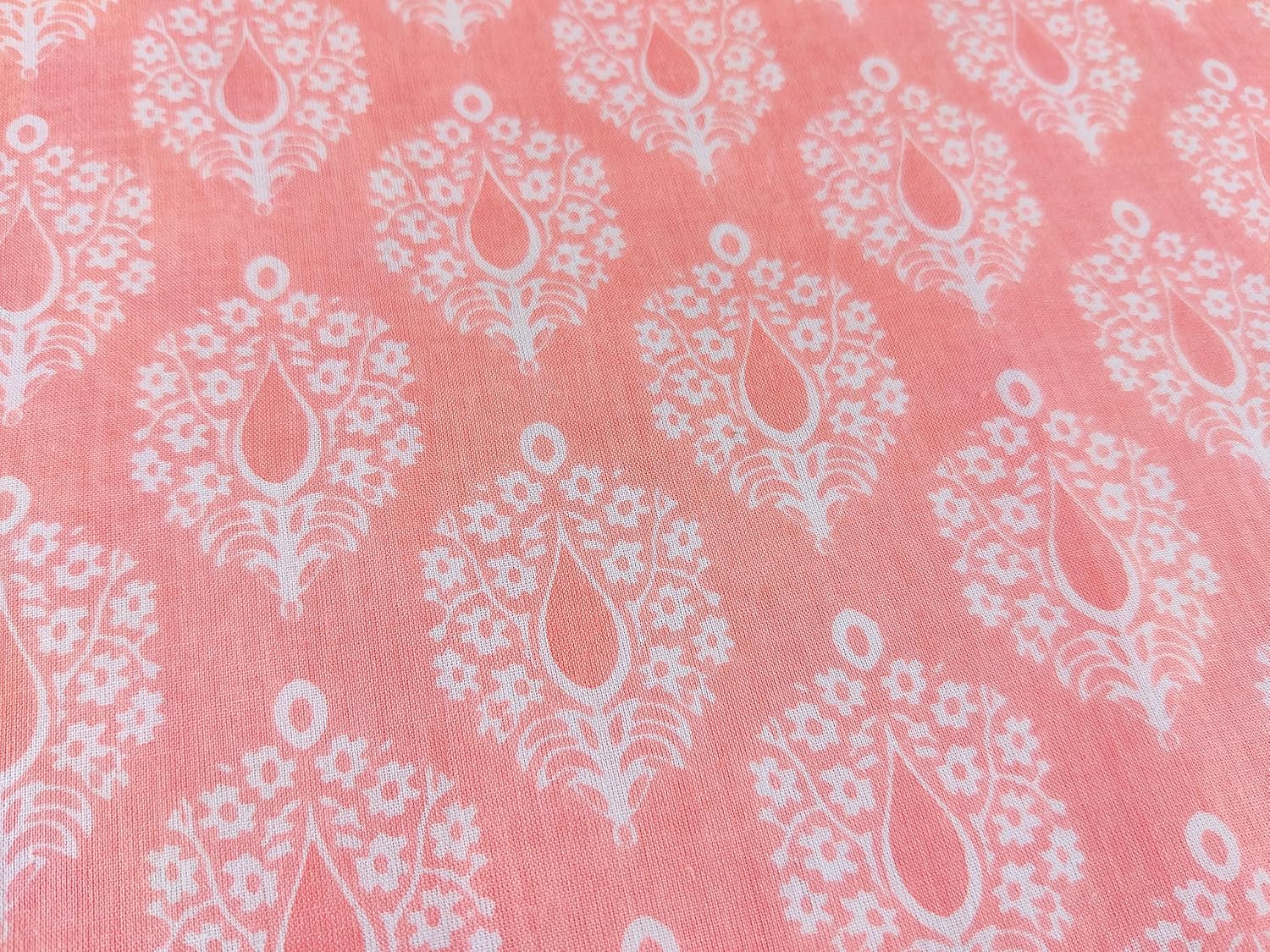 AVKA Studio Hand Block Print Fabric by The Yard – PRECUT 1 Yard 42 Inch Width – 100% Cotton Material – Light Coral/Peach Floral Pattern – Light Weight Indian Cloth for Making Summer Dress Tops etc