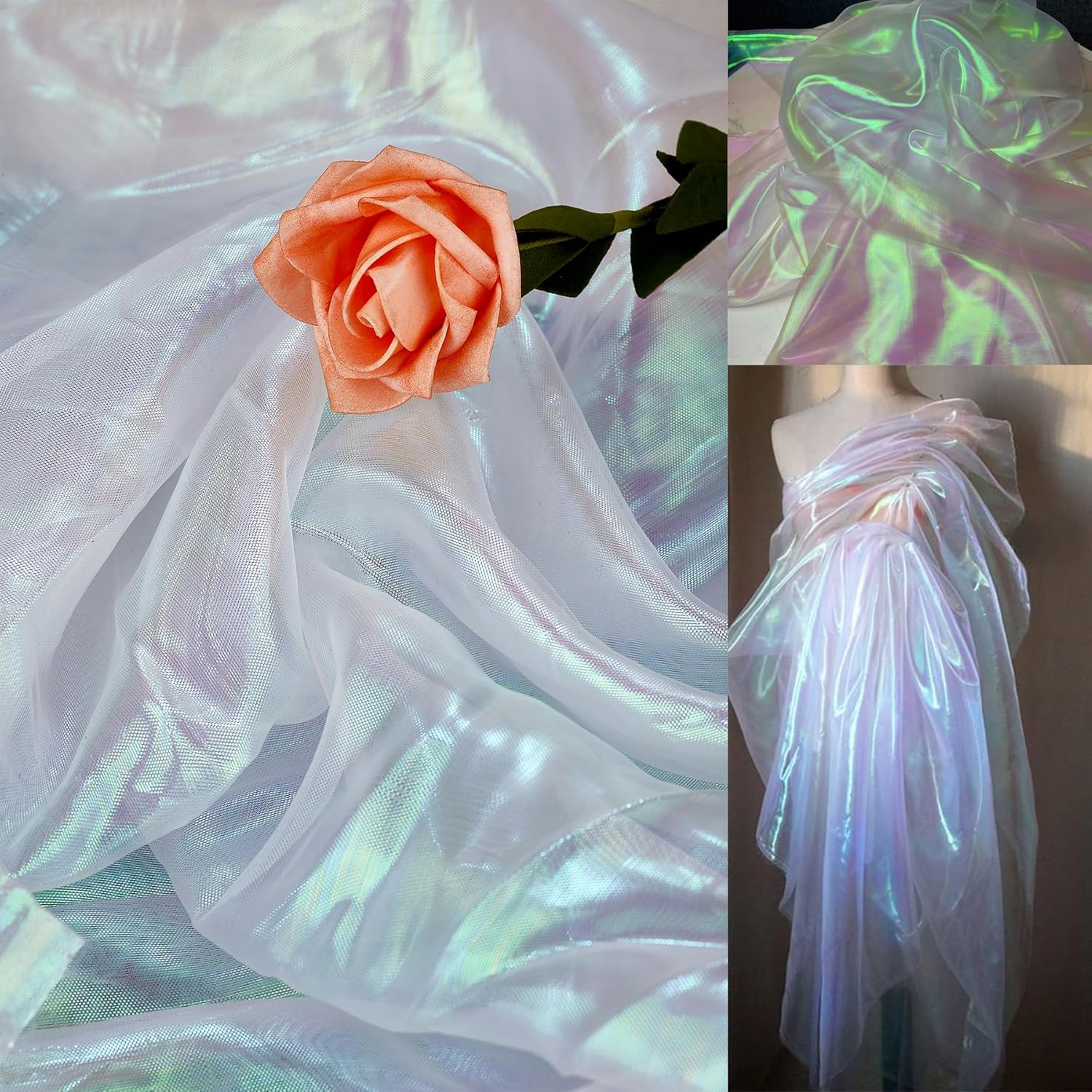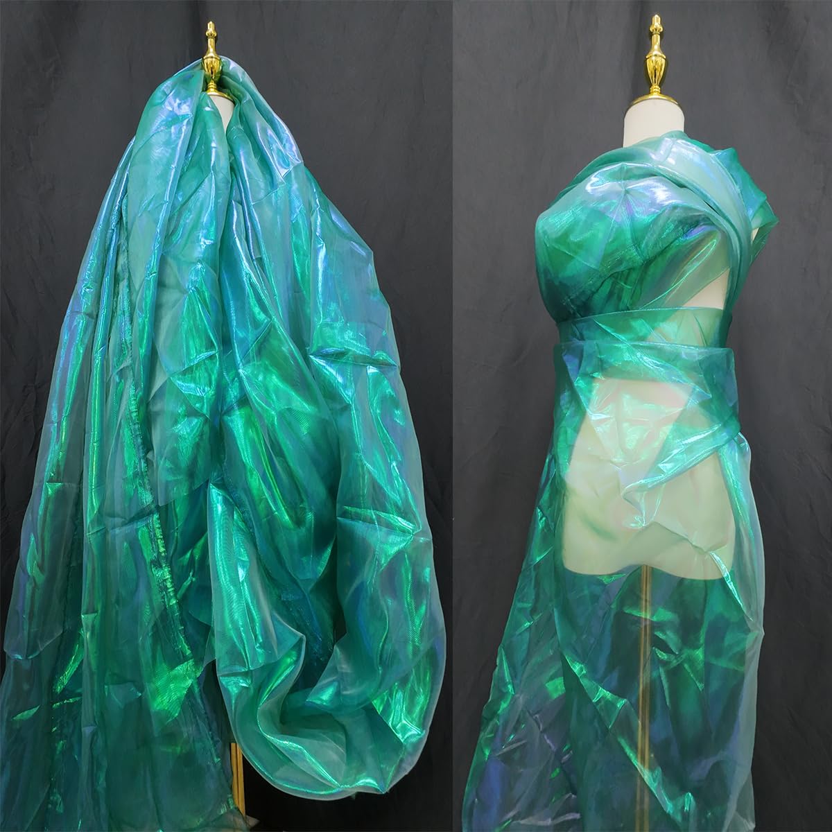 Blackish Green 3.3 Yard Long Iridescent Organza Fabric for Halloween, Wedding, and DIY Projects – 59inch Wide Sheer Silk Organza, Gauze, and Tulle Fabric for Fashion Designers and Gift Decoration