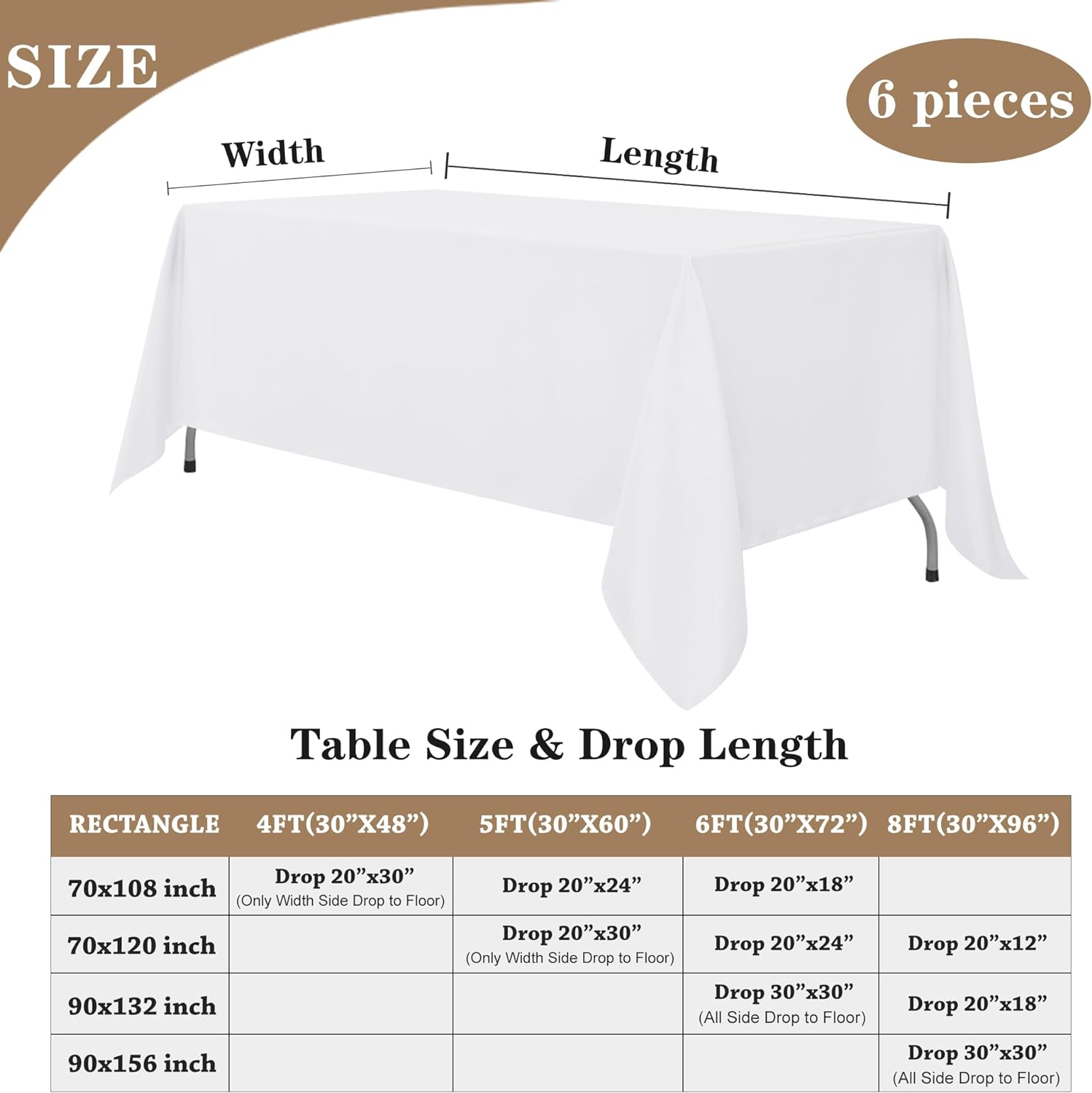 Fitable White Tablecloths for Rectangle Tables, 6 Pack – 70 x 120 Inches – Reusable and Washable Table Clothes for 6-8 Ft Tables, Polyester Fabric Table Covers for Wedding, Party, Banquet