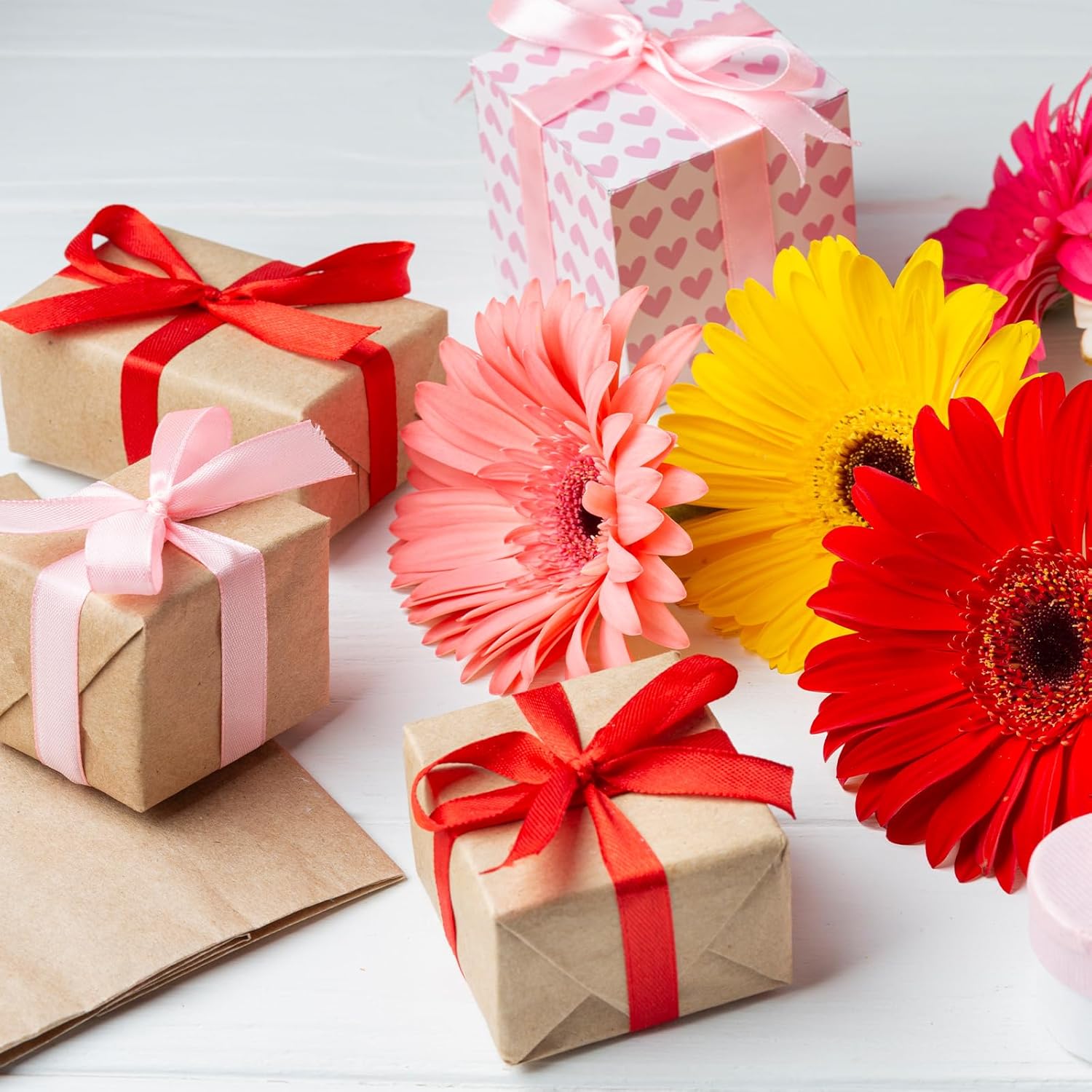 Flezoo 25 Yards Red Satin Ribbon 1 1/2inch, Single Face Polyester Silk Fabric Hair String Ribbon for Craft, Flower Bouquets, Gift Wrapping, Wedding, Bow Making and Valentines Decoration