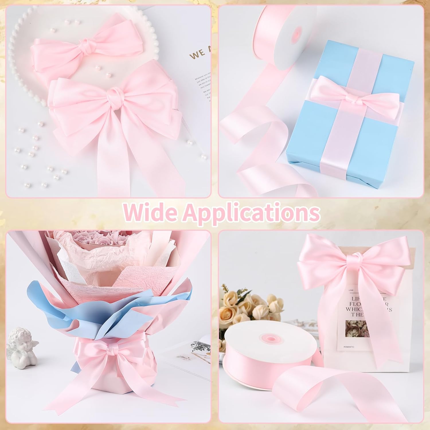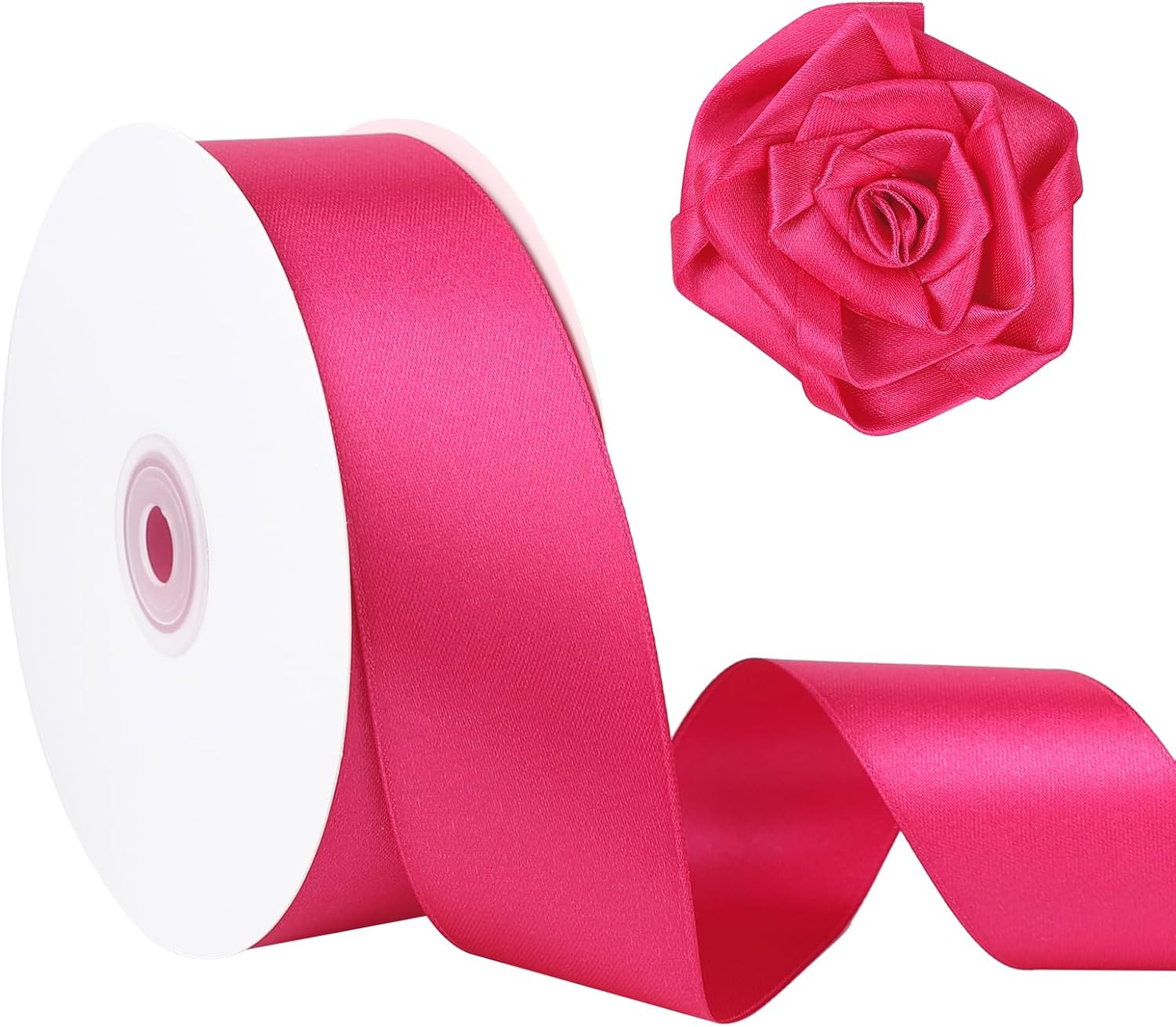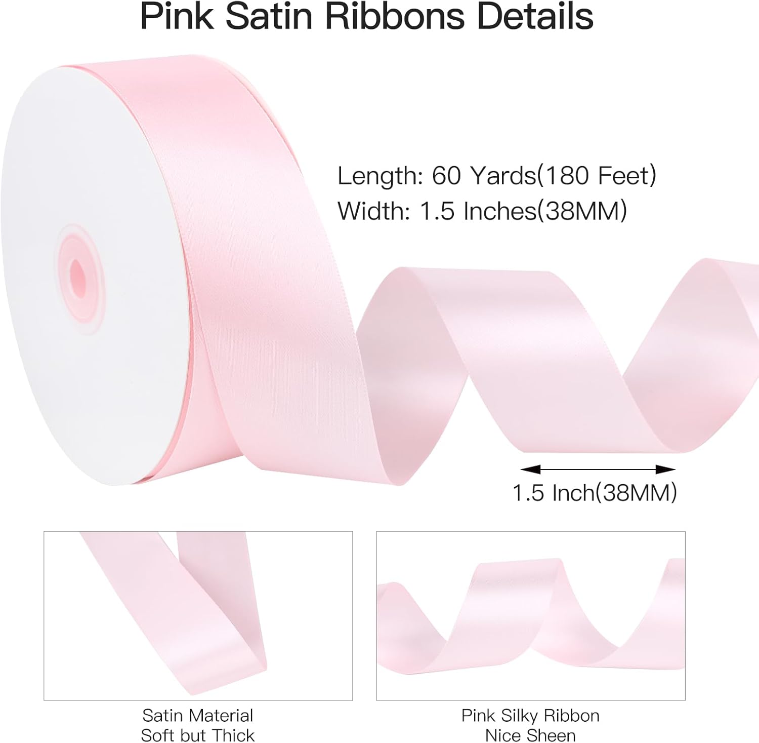 Pink Satin Ribbon 1.5 Inch x 60 Yards Single Face Polyester Fabric for Gift Wrapping, Wedding Bouquets, Baby Shower, Party Crafts, DIY Sewing, Hair Bows, Holiday Decorations
