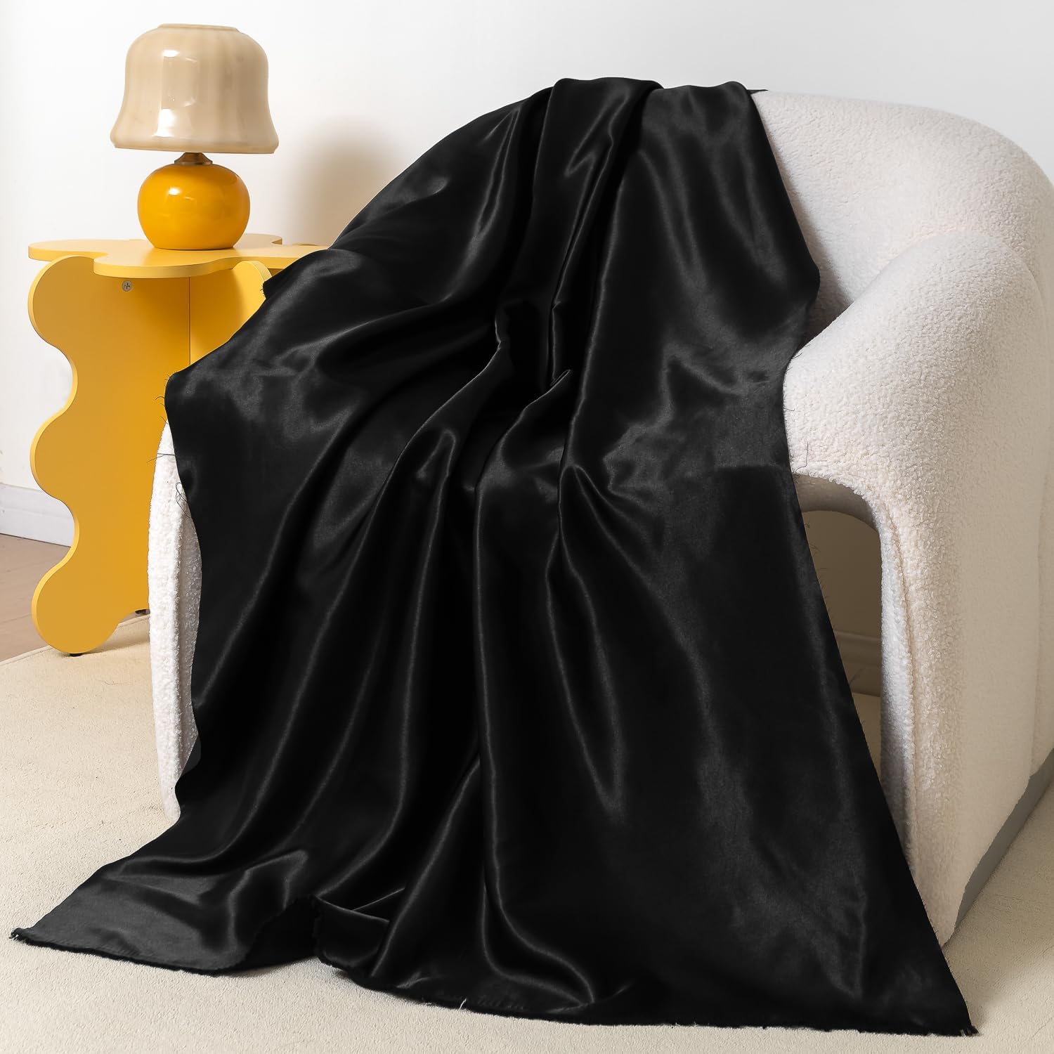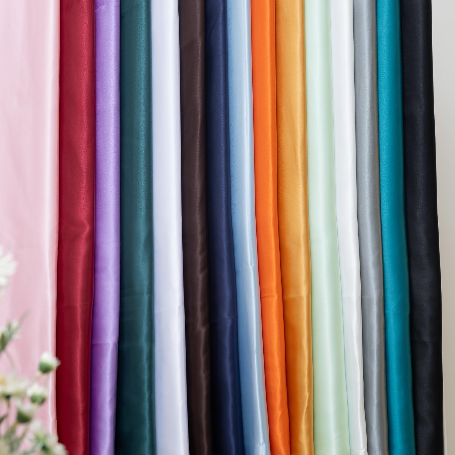- [ WIDE USE SCENARIOS ] Unleash your creativity with our classic-looking satin fabrics.You can use it to make table decorations such as satin table runners, satin napkins, satin tablecloths, satin chair sashes. It can also be used to make satin bonnet, satin scrunchies, satin head scarf, satin tie, wedding dress, gowns, costumes.