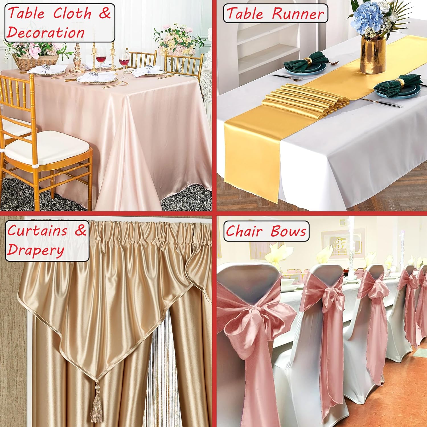 Satin Fabric | Decoration & Sewing | Shiny & Luxury | 60″ Wide Roll | Metallic Shiny | Upholstery, Lining, Drapery, DIY Crafts (Red, 5 Yards)
