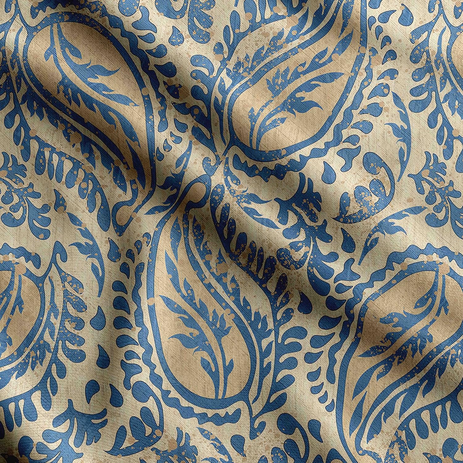 Soimoi Asian Paisley Print – Blue, Pure Silk Fabric – 42 Inch Wide, 1 Yard, Lightweight Material, Perfect for Elegant Dresses, Sarees, Scarves, Evening Wear