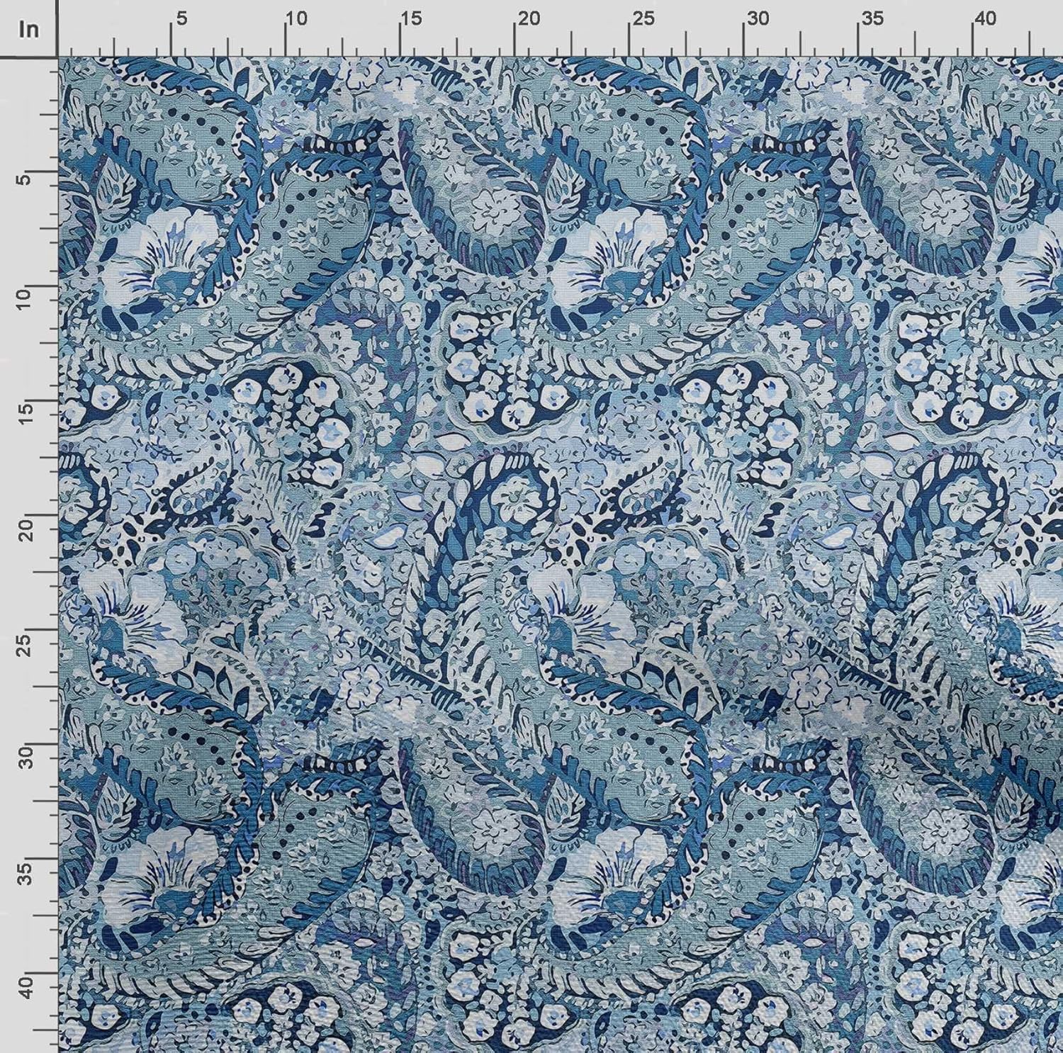 Soimoi Asian Paisley Print – Blue, Pure Silk Fabric – 42 Inch Wide, 1 Yard, Lightweight Material, Perfect for Elegant Dresses, Sarees, Scarves, Evening Wear
