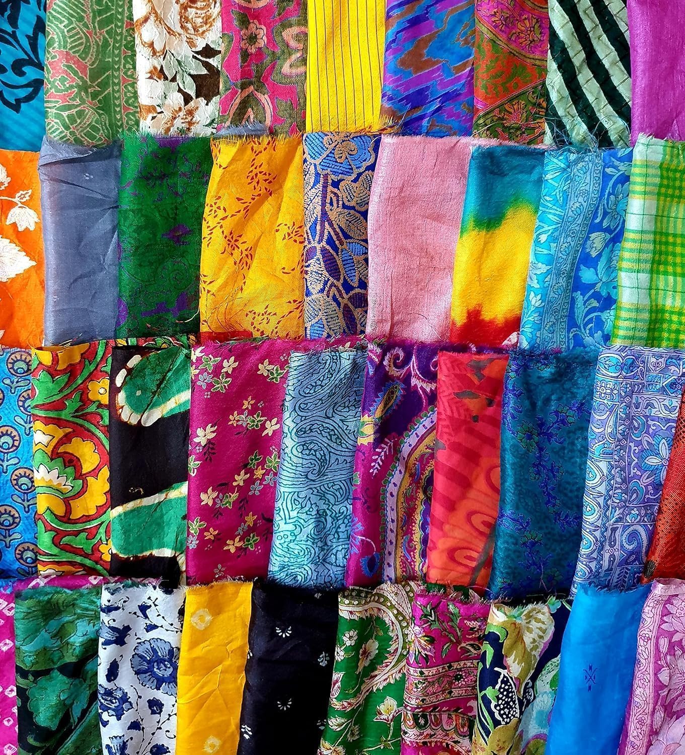 Crafted from authentic sari silk, each square tells a story of Indian textile heritage, featuring a rich tapestry of colors and patterns. The 8-inch size provides ample material for various projects, from home decor and scrapbooking to quilting and art dolls.